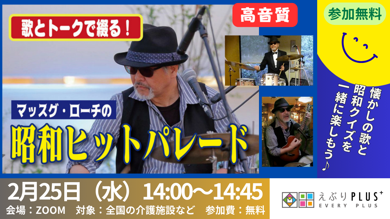 バンドマン歴50年以上・ラジオDJ18年・芸能イベント事業者として40年以上の経験を生かした超安定の演奏と自由で気楽なトーク、懐かしい映像を。マッスグ・ローチさんが担当。
